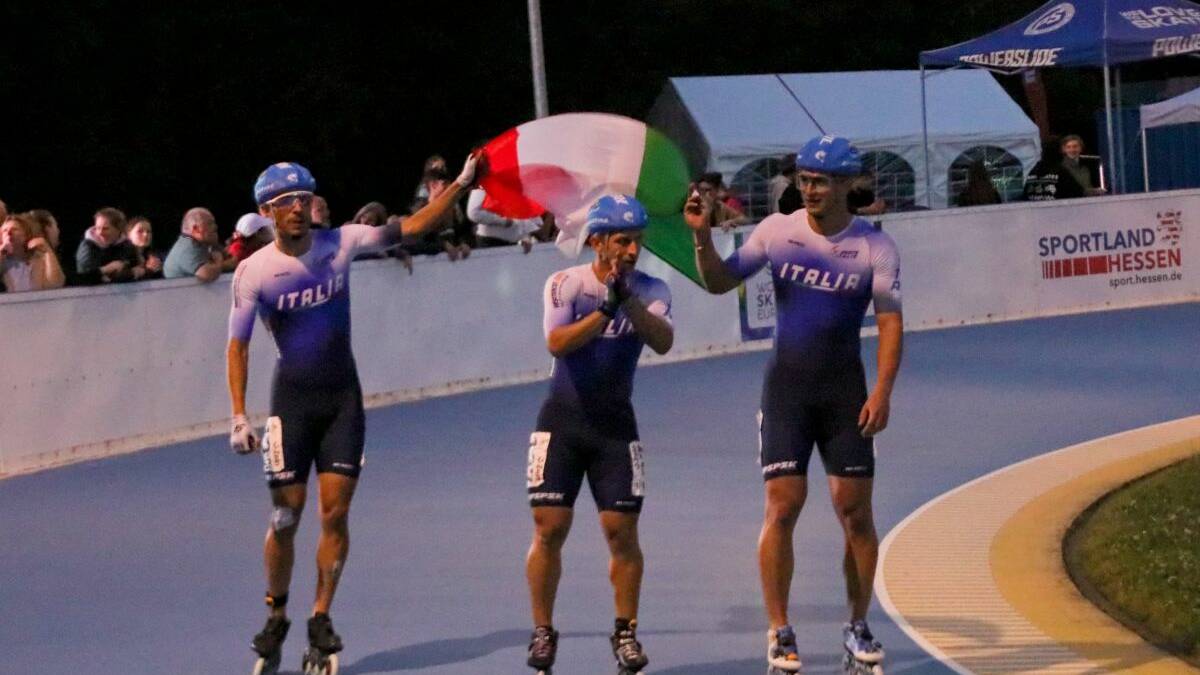 ROMA (ITALPRESS) – Italia in grande evidenza ai Campionati Europei di Pattinaggio Corsa Pista, Strada e Maratona di Gross Gerau. In Germania gli azzurri del CT Massimiliano Presti portano a casa medaglie e titoli nelle categorie senior, junior e allievi in attesa delle prove su strada. La staffetta azzurra è nuovamente sul tetto d’Europa. Duccio Marsili, Giuseppe Bramante, Vincenzo Maiorca e Daniel Niero centrano l’oro e confermano il titolo dello scorso anno. Tra i senior, gli azzurri vincono anche medaglie d’argento e di bronzo. Duccio Marsili centra la seconda piazza nella 500 m sprint e il bronzo nella 1000 sprint. Giulia Presti, al rientro dopo un anno di assenza dalle competizioni su rotelle, porta a casa un argento nella gara a punti della 5000 donne e il bronzo, nella 10000 a eliminazione. Americana senior donne che incrementa il bottino tricolore alla voce bronzo, con la medaglia di squadra di Alice Sorcionovo, Melissa Gatti, Ilaria Carrer. 200 metri ad atleti contrapposti che vede l’Italia ancora protagonisti con l’argento di Vincenzo Maiorca, nella gara vinta dallo spagnolo Sebastian Guzman. Argento e bronzo per Daniel Niero, rispettivamente nella 10000 a eliminazione e nella 5000 a punti. Asja Varani sale sul terzo gradino del podio nella 500 sprint che un anno fa, in Belgio, le aveva regalato il titolo continentale.Sotto i riflettori anche i giovani talenti del pattinaggio azzurro. Nella categoria Junior arrivano importanti conferme. Sofia Paola Chiumiento sale a quattro titoli europei: la pattinatrice della Mens Sana Siena è oro nella 200 m atleti contrapposti, oro nella 1000 m sprint e nella 500 Sprint. La senese centra poi un titolo da condividere con le compagne Rita De Gianni e Asia Negri, nella 3000 americana.Cristian Scassellati è il nuovo campione europeo della 200 atleti contrapposti Junior e della 500 Sprint Junior. Giorgio Ghisio Erba, al suo primo anno da Junior, piazza subito un oro continentale nella 10000 metri a eliminazione. L’atleta romano centra poi l’argento nella 1000 sprint e il bronzo nella 5000 punti. 3000 americana Junior uomini d’argento con la staffetta composta da Guglielmo Lorenzoni, Gioele Citterio e lo stesso Ghisio Erba. Bellissimo lavoro di squadra nella 1000 sprint junior e grandissima gara di Adam Maiorca che si laurea campione continentale di categoria. Dalla 500 Sprint Junior donne altre due splendide medaglie per gli azzurri: l’argento di Rita De Gianni e il bronzo di Asia Negri, che colorano il podio a tinte tricolore, grazie anche all’oro della Chiumiento. Altre due medaglie d’argento per i nostri Junior: quella di Guglielmo Lorenzoni, nella 200 atleti contrapposti e di Agnese Dominoni, nella 5000 punti donne. Oro e titolo Allievi della giovanissima Vittoria Andreetta nella 200 metri donne. Soddisfazione espressa dal CT Massimiliano Presti: “Stiamo portando avanti un lavoro su più fronti con l’obiettivo di premiare il maggior numero possibile di atleti. Questo approccio sta dando risultati già dall’Europeo di Gross Gerau. In particolare vogliamo ampliare il numero di pattinatori convocati, per avere in futuro più opzioni nelle selezioni”. Campionati che a Gross Gerau andranno avanti fino a Domenica 13 luglio, con gli Azzurri a caccia di altri titoli continentali.– foto Skate Italia – (ITALPRESS).