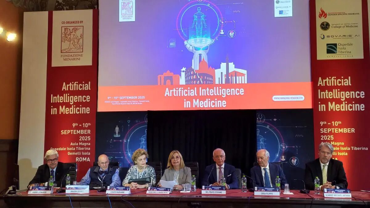 ROMA (ITALPRESS) – L’intelligenza artificiale sta producendo quella che molti considerano una nuova “rivoluzione industriale”, permeando ogni settore della vita umana. Nel campo medico, sta diventando sempre più un prezioso alleato nella diagnosi tempestiva e nella cura delle malattie in modo sempre più personalizzato, con un potenziale ancora inesplorato, ma anche con una serie di sfide da affrontare.Il ruolo dell’intelligenza artificiale spazia dal trattamento di patologie cardiache a quelle respiratorie, ma anche nella diagnosi tumorale. Lo stato dell’arte sulle nuove prospettive e innovazioni dell’uso dell’IA nel settore medico è stato al centro del congresso “Artificial intelligence in medicine”, organizzato dalla Fondazione Menarini, in collaborazione con Gemelli Isola – Ospedale Isola Tiberina, University of Central Florida College of Medicine, Sovaris AI e The Foundation for Gender-specific Medicine, che ha visto la partecipazione a Roma, il 9 e il 10 settembre, di esperti di fama mondiale nel campo dell’intelligenza artificiale applicata alla medicina. Il congresso, in linea con l’obiettivo di Fondazione Menarini di diffondere scienza e conoscenza, ha riunito i massimi esperti del settore per tracciare anche il prossimo sviluppo dell’IA applicata alla medicina, con lo scopo non solo mettere in luce le potenzialità, ma anche le sfide. L’intelligenza artificiale sta infatti rivoluzionando anche la medicina: ridisegna le diagnosi con enormi quantità di dati e ne taglia i tempi, identifica nuovi fattori di rischio e li integra con quelli già noti, migliora il rapporto medico-paziente e la gestione della malattia, accorcia le liste d’attesa. Spesso l’intelligenza artificiale viene vista come una minaccia che, in futuro, potrà arrivare a sostituire i medici stessi. Ma i dati dicono l’opposto. “Le ricerche suggeriscono il contrario: non sarà l’intelligenza artificiale a sostituire gli specialisti, ma saranno gli specialisti che sanno far uso delle potenzialità dell’intelligenza artificiale a rimpiazzare chi non sarà in grado di sfruttare i vantaggi di questo strumento”, ha dichiarato Stefano Del Prato, presidente di Fondazione Menarini. L’aspetto “umano” del rapporto tra medico e paziente “non potrà essere sostituito dall’IA”, ha aggiunto, sottolineando che, al contrario, “l’intelligenza artificiale rafforzerà invece la pratica medica, consentendo agli specialisti di sfruttare la tecnologia per migliorare, non solo l’assistenza clinica, ma anche la formazione continua di medici e studenti, cambiando il modo in cui si insegna e si impara la professione sanitaria – ha proseguito il presidente di Fondazione Menarini -. Non solo. Tra gli altri potenziali vantaggi dell’IA, anche la possibilità di rendere la medicina più sicura, riducendo ritardi nella diagnosi e possibili errori nella ricerca di una cura efficace. Inoltre, l’IA può alleggerire il carico di lavoro amministrativo dei medici, spesso citato come causa di burnout, lasciando più tempo per instaurare un dialogo più chiaro ed efficace con i pazienti”. L’intelligenza artificiale consente allo specialista di analizzare e comparare una mole di immagini e dati, ma anche di avere un “collega virtuale”, un co-pilota, capace di intercettare sottilissime anomalie che potrebbero sfuggire all’occhio umano. Non riduce il ruolo del medico, ma lo ridefinisce. I vantaggi dell’uso dell’IA sono, pertanto, indubbi e proiettano la sanità verso la modernità, contraddistinta sempre più dall’interazione fra uomo e macchina. Inoltre, l’intelligenza artificiale, con i suoi algoritmi, fornisce le basi per una medicina personalizzata sfruttando sistemi avanzati capaci di elaborare e integrare profilo genetico, biomarcatori, interazione con l’ambiente e storia clinica del singolo paziente per identificare trattamenti su misura, massimizzando l’efficacia terapeutica e minimizzando gli effetti collaterali. Un uso, quello dell’IA, che è trasversale in diverse specializzazioni. Al riguardo, il presidente di Fondazione Menarini ha dichiarato: “L’intelligenza artificiale non riguarda una sola specialità ma abbraccia tutte le branche della medicina, dalla cardiologia alla diabetologia, fino alla pneumologia. Ma si sta spingendo ancora più avanti, verso nuove frontiere: lo sviluppo dei gemelli digitali (digital twins), lo sviluppo di reti ad alta capacità potranno offrire l’integrazione delle varie specialità in una visione di precisione ma olistica oltre che permettere simulazioni di interventi complessi, di sistemi predittivi per la gestione di epidemie e pandemie e lo sviluppo di robot chirurgici autonomi”. Non vanno dimenticati, tuttavia, gli aspetti etici e normativi su cui bisognerà intervenire, come emerso nel corso dell’evento e della conferenza stampa finale.Durante il convegno, particolare risalto è stato dato all’applicazione dell’IA per prevenire e curare le malattie cardiache e respiratorie, e il diabete, tra le patologie più diffuse e che ogni hanno provocano migliaia di vittime. Nella lotta alle malattie cardiovascolari, l’IA è ormai uno strumento di diagnosi e screening fondamentale, che, di fatto, sta rivoluzionando la cardiologia. “L’intelligenza artificiale con le sue enormi potenzialità si sta dimostrando un importante alleato degli specialisti, che aiuterà a diagnosticare sempre prima le malattie cardiache, a prescrivere terapie migliori, a monitorare i pazienti a più alto rischio, riducendo costi e risorse e migliorando la tempestività delle cure, con un impatto diretto sulla sopravvivenza. Ad esempio, l’elettrocardiogramma, che un tempo serviva solo per leggere l’attività elettrica del cuore, grazie all’IA vive una seconda giovinezza e può rivelare dati sulla funzione cardiaca, cioè come il cuore si contrae, che prima richiedevano un ecocardiogramma. Potenziando l’ECG con l’intelligenza 