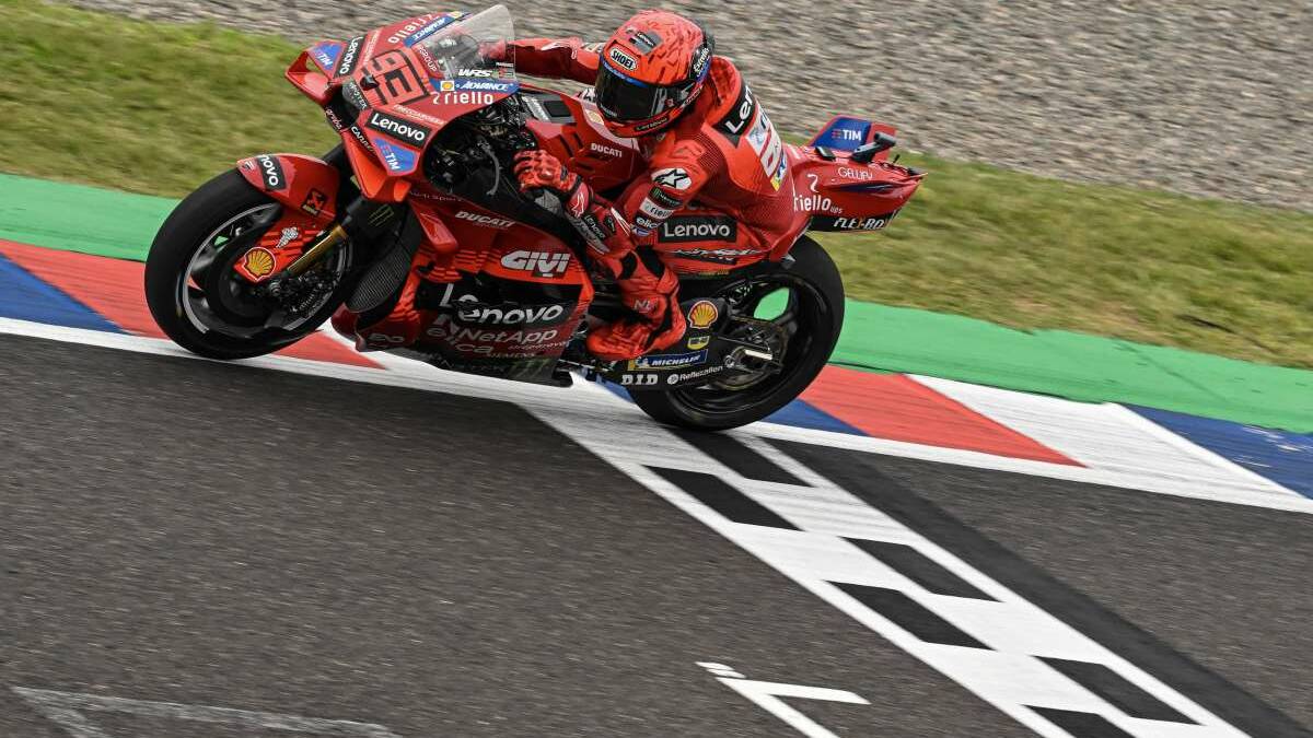 AUSTIN (STATI UNITI) (ITALPRESS) – Che la pista sia asciutta, bagnata o in condizioni miste non fa alcuna differenza per Marc Marquez, assoluto dominatore anche del venerdì del Gran Premio delle Americhe. Nemmeno, infatti, sul circuito di Austin lo spagnolo si è schiodato dalla vetta della classifica, chiudendo al primo posto sia le FP1 che la Practice. Impressionante la prestazione del pluri-iridato spagnolo della Ducati soprattutto nella seconda sessione, dove, su una pista dalle condizioni inusuali, ha siglato il miglior crono in 2’02″929, rifilando ben 0″736 millesimi di distacco al primo degli inseguitori, Fabio Di Giannantonio. A chiudere il podio di questa prima giornata americana ci pensa Franco Morbidelli (+0″837), al terzo posto: doppietta, dunque, per le Ducati del Team Vr46. Il monopolio della casa di Borgo Panigale si estende per tutta la top five: Alex Marquez (+0″882) si piazza quarto, davanti al compagno Fermin Aldeguer (+0″973), quinto. Tra la sesta e la nona posizione troviamo, nell’ordine, Jack Miller, Pedro Acosta, Maverick Vinales e Joan Mir. Rumorose le esclusioni dal Q2 di Fabio Quartararo e Marco Bezzecchi, rispettivamente all’undicesimo e al tredicesimo posto. La top ten odierna viene chiusa da Francesco Bagnaia (+1″530), qualificato al Q2 per il rotto della cuffia. Per il pilota di Chivasso c’è ancora tanto lavoro da fare per ritrovare il perfetto feeling con la sua Ducati. Difficile da spiegare cosa sia mancato oggi a Pecco, apparentemente in ripresa almeno fino ai dieci minuti finali di Practice, dove è mancato qualche decimo. Umore opposto, invece, dall’altro capo del box con Marquez, la cui unica sbavatura della giornata è stata una caduta nelle FP1, dovuta all’eccessiva fiducia: “Stamattina ho esagerato e alla curva due ho subito un acqua planning. Ho iniziato comunque bene questo gran premio. Domani dovrò ritrovare lo stesso feeling di oggi”. Dopo la pioggia caduta per quasi tutta la mattina, nel pomeriggio la pista si è progressivamente asciugata, seppur non in maniera completa. Molti piloti ne hanno comunque approfittato per montare le gomme slick e migliorare così i propri cronologici. Come annunciato nella giornata di ieri, Jorge Martin ha sorpreso tutti gli appassionati, presentandosi negli Stati Uniti per mostrare vicinanza al proprio team e programmare con esso il proprio ritorno in pista. Ai microfoni di Sky Sport, il campione del mondo in carica ha fornito un rapido quadro della propria situazione di salute: “Vedo la luce in fondo al tunnel: manca poco al mio ritorno in sella. Mi sono rotto dieci ossa ed è stata la peggiore caduta della mia carriera”. Sembrano, dunque, sempre più alte le possibilità di rivedere Martin in moto tra due settimane in Qatar. Infine, per quanto riguarda gli orari di domani, le qualifiche della classe regina sono in programma per le ore 16:45: Sprint, invece, in serata alle 21.– Foto Ipa Agency –(ITALPRESS).
