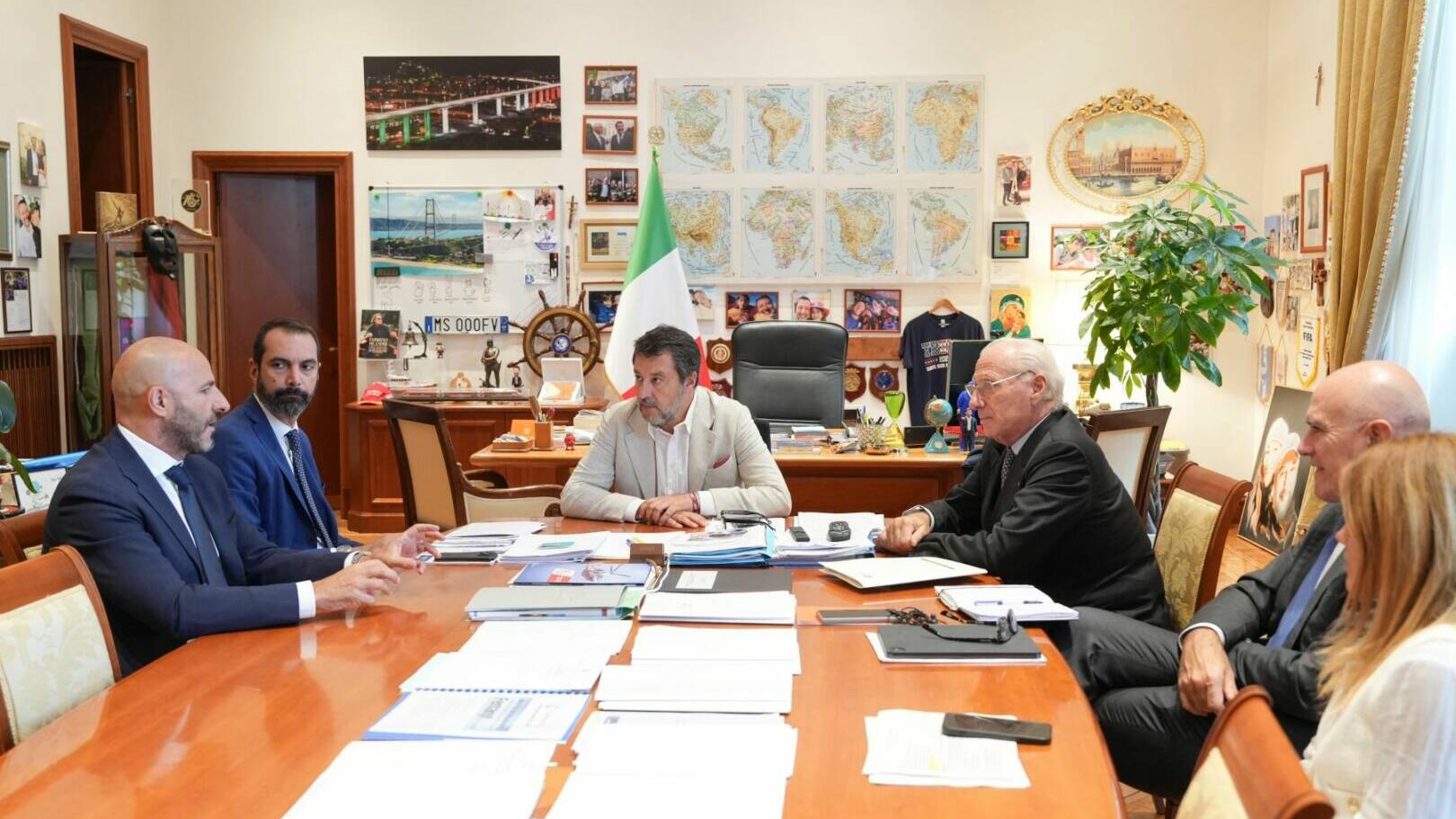 ROMA (ITALPRESS) – “Incontro al MIT tra il Vicepremier e Ministro Matteo Salvini e il sindaco di Messina Federico Basile, dedicato al progetto del Ponte sullo Stretto. Presenti anche Pietro Ciucci, Amministratore Delegato della società Stretto di Messina, e Aldo Isi, Amministratore Delegato di RFI”. E’ quanto si legge in una nota.“L’incontro, propedeutico all’avvio dei lavori – sottolinea la nota del MIT -,è servito a verificare il rispetto delle tempistiche previste e ad approfondire alcuni temi cruciali: le questioni legate alle risorse idriche del territorio, la viabilità, gli aspetti abitativi nonchè la formazione dei lavoratori locali per creare nuove opportunità e posti di lavoro per i giovani del territorio. In particolare nell’ambito delle opere anticipate presentate dal Comune e approvate dalla delibera CIPESS del 6 agosto – che sarà efficace con la registrazione della Corte dei conti e la pubblicazione in Gazzetta Ufficiale – si è convenuto sull’opportunità di dare priorità ai progetti riguardanti la riqualificazione della rete idrica e stradale nonchè lo sviluppo di unità residenziali”. “Per il progetto di collegamento dei raccordi ferroviari del ponte alla linea esistente – prosegue la nota -, sono state illustrate le opzioni tecniche che hanno portato all’individuazione dell’attuale soluzione ‘Contessè rispetto alle soluzioni precedenti. RFI si è impegnata a sviluppare uno studio di ottimizzazione progettuale per ridurre gli impatti sul quartiere di Contesse, che sarà presentato a breve”.“L’obiettivo condiviso è l’istituzione di un ‘tavolo permanentè sul Ponte, per affrontare in maniera costante tutte le questioni legate all’opera, nell’interesse delle comunità coinvolte. Dopo l’incontro odierno sul versante siciliano, seguirà a breve un analogo appuntamento sul lato calabrese”, conclude la nota del MIT.– foto ufficio stampa Mit –(ITALPRESS).