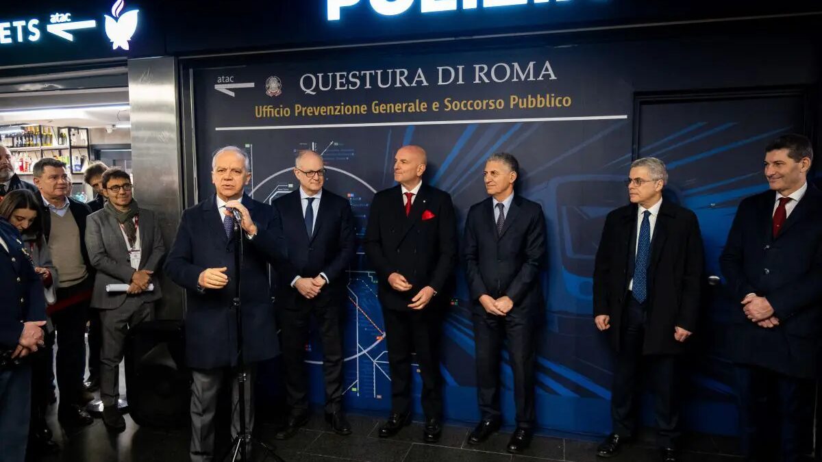 Dal 2025 ad oggi la Sezione Polmetro ha capitalizzato un bilancio di oltre 36.700 persone identificate, 78 arresti e 195 denunce. La sua azione, a tutela della legalità e della sicurezza dei viaggiatori, si arricchisce anche del contributo assicurato dal personale incaricato dei servizi di vigilanza privata alle dipendenze di Atac, la cui attività si sviluppa in piena sinergia con le Forze dell’ordine. L’inaugurazione dei locali è stata preceduta dal perfezionamento di un protocollo di intesa anche teso a rilanciare e rafforzare le strategie operative, nell’ottica della ottimizzazione delle prerogative degli addetti alla sicurezza privata nella prevenzione e nel contrasto dei reati. Il contributo di Atac a beneficio della sicurezza collettiva si inserisce nel solco di un impegno longevo dell’azienda, anche testimoniato da investimenti che hanno visto l’installazione di 8.500 telecamere di sorveglianza a tutela dei mezzi destinati al trasporto pubblico locale e delle relative infrastrutture, integrate da un dispositivo di vigilanza privata schierato su tutta la rete, che coinvolge circa 220 operatori al giorno, ai quali si aggiunge il personale della Security ATAC impiegato sul territorio e nelle centrali operative. “Si tratta di un progetto importantissimo immaginando progressivamente di espandere qui a Roma un progetto che era partito a Milano. Siamo molto soddisfatti, stiamo incrementando questo progetto anche in termini di risorse che dedichiamo perchè stiamo vedendo non solo l’efficacia in termini numerici, ma stiamo vedendo che il personale sta condividendo un obiettivo importante che è quello di portare sicurezza anche alle fasce sociali più deboli, perchè queste sono quelle che usano la metropolitana. Siamo contentissimi, è l’occasione dell’immissione di un numero di operatori che raddoppia l’organico, più di 50 persone adibite ma intendiamo di portarle a 80”, ha affermato il ministro dell’Interno, Matteo Piantedosi. Per il sindaco di Roma, Roberto Gualtieri, si tratta di “un segno di rafforzamento del presidio di rafforzamento della presenza delle forze dell’ordine, un tassello di rafforzamento della sicurezza nella metropolitana per contrastare i reati che vengono commessi, prevenirli o arrestare tempestivamente. Quindi, è molto positivo. C’è un aumento della vigilanza da parte di Atac, c’è un sistema di telecamere, ma è anche un punto dove un cittadino può segnalare, un punto di contatto più diretto con un presidio fisso. Una buona notizia, andiamo avanti in questa direzione per rafforzare la sicurezza a Roma e nella metropolitana”. Il Direttore Generale di Atac, Paolo Aielli, spiega che è “la prima volta che la Polizia apre la sua sede” in una metropolitana, “è il segno dell’avanzamento della collaborazione che Atac ha ormai già da anni con le forze dell’ordine. Ci sarà questo presidio fisso che si unisce alla nostra rete che già è composta di 220 guardie giurate più il coordinamento. E’ importante la rete tecnologica che supporta questo tipo di intervento. Abbiamo 5000 telecamere, condividiamo le analisi e le informazioni attraverso il coordinamento della Prefettura”. Il presidente di Atac, Alessandro Rivera, evidenzia il processo di rinnovamento dell’azienda: “stiamo proseguendo un percorso molto significativo e impegnativo di investimento, rinnovamento e potenziamento del servizio. Sono state messe a terra diverse linee di azione, sono state recuperate, anche grazie al contributo importante delle istituzioni, i fondi che servono per sostenere queste azioni di rinnovamento da investimento nel digitale, investimento nella flotta, un rinnovamento nel rapporto con i nostri clienti. Credo che a mano a mano che si proseguirà gli effetti di questa azione si vedranno sempre di più”. Infine, il Questore di Roma, Roberto Massucci, si dice soddisfatto “soprattutto per la passione che i miei collaboratori stanno mettendo in questo servizio. L’obiettivo è quello di potenziare per il futuro questo organico che oggi ha già superato abbondantemente i 50 operatori, intendiamo arrivare fino ad 80. Vorremmo ampliare iniziative come questa nelle stazioni più remote, cioè dare un punto di riferimento ai cittadini”.